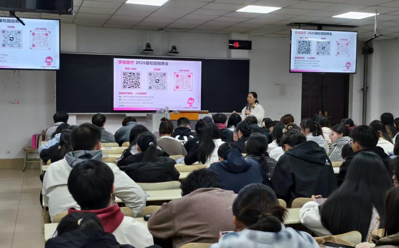宣讲会现场氛围热烈,京柏医疗代表对企业的发展历程、母婴健康行业的前景以及校园招聘计划进行了详细介绍,并着重解读了健康顾问、医生助理/营养师等与专业高度匹配的岗位要求。作为在孕婴领域深耕多年的标杆企业,京柏拥有两百余项专利,采用“医疗 + 健康管理”双板块布局——从为孕妈提供健康管理服务、涉足保健院月子场景,到推出医院端智能软件、打造吸引海外顾客的国际市场明星产品,具备坚实的顾客消费基础,还获得政府支持并与医院开展深度合作,为引领行业发展奠定了坚实基础。而健康服务与管理专业的学子们,正可借助京柏的平台实现成长。京柏公司为健康服务与管理专业的学生提供了与专业契合、涵盖职业素养和思维模式的系统培训,助力专业学生实现从校园学子到职场人才的转变。