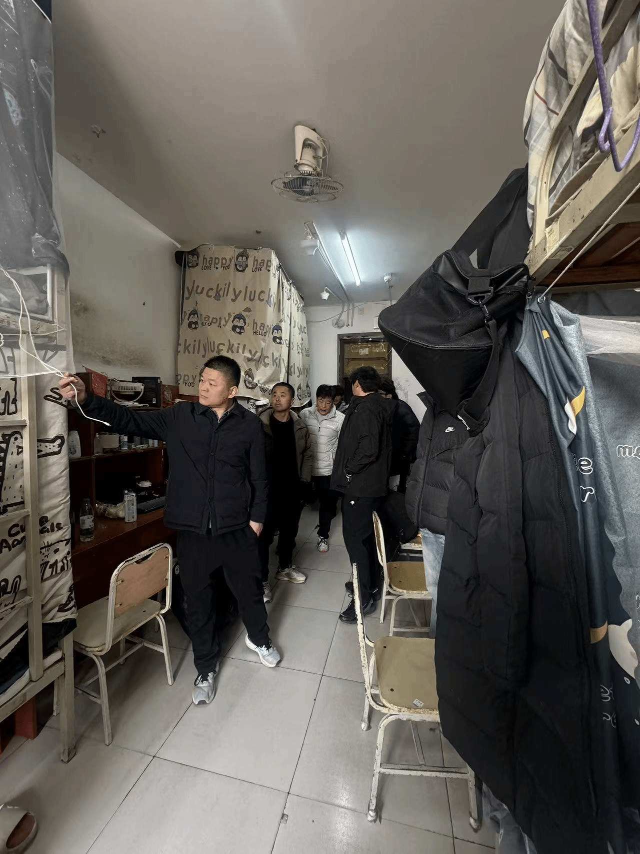 走访采取分组分片、逐栋逐间推进方式。老师们重点查看宿舍卫生、内务整理与基础设施状况全面排查违规电器、私拉乱接、消防通道等安全隐患与学生面对面交流询问返校适应、学习训练、生活需求等情况倾听意见建议现场解答疑问、记录问题并明确整改与反馈路径同时引导学生调整作息、收心归位强调宿舍文明与安全规范。