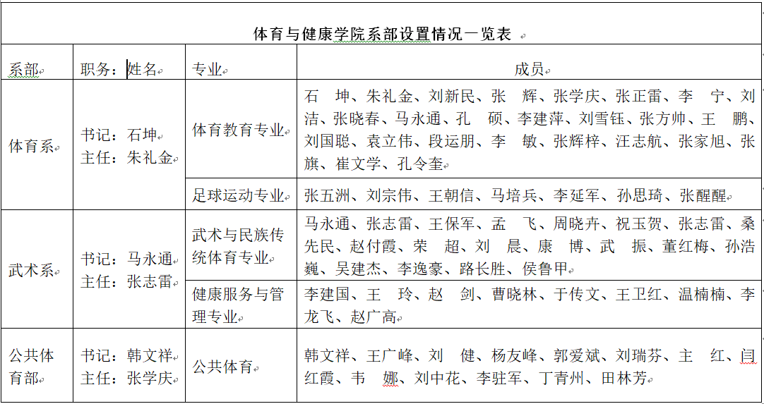 体育与健康学院系部设置